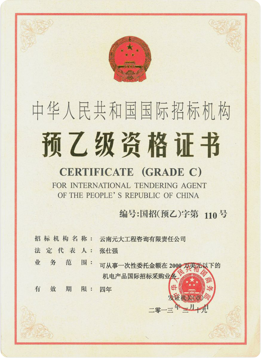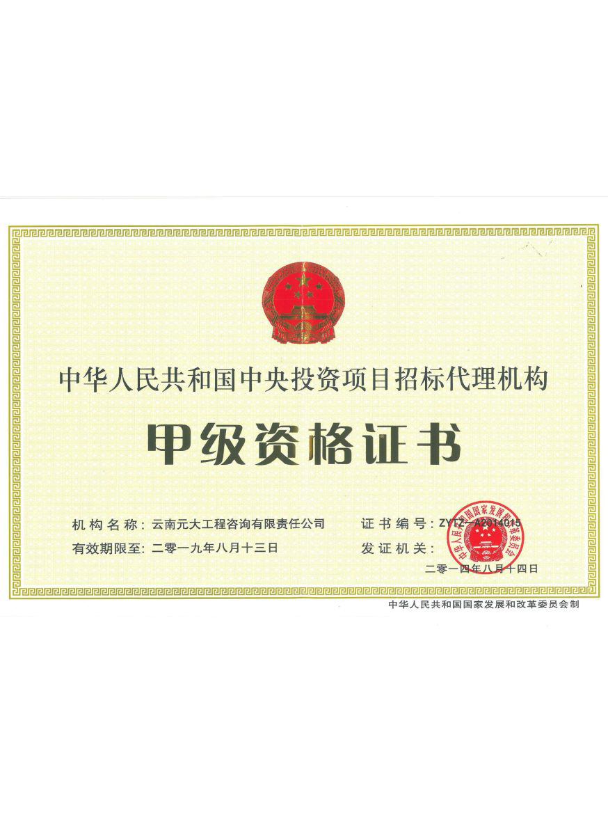 公司是云南省招標(biāo)投標(biāo)行業(yè)協(xié)會(huì)會(huì)長(zhǎng)單位,現(xiàn)為云南省住建廳信用評(píng)級(jí)招標(biāo)代理機(jī)構(gòu)AAA級(jí)單位。公司先后榮獲住建部頒發(fā)的“工程招標(biāo)代理機(jī)構(gòu)甲級(jí)資質(zhì)證書”、財(cái)政部頒發(fā)的“政府采購(gòu)代理機(jī)構(gòu)甲級(jí)資格證書”,并在財(cái)政部及中國(guó)政府采購(gòu)網(wǎng)“政府采購(gòu)代理機(jī)構(gòu)名單”登記備案、獲得國(guó)家發(fā)展改革委頒發(fā)的“中央投資項(xiàng)目招標(biāo)代理機(jī)構(gòu)甲級(jí)資格證書”、商務(wù)部頒發(fā)的“國(guó)際招標(biāo)機(jī)構(gòu)預(yù)乙級(jí)資格證書”、機(jī)電產(chǎn)品國(guó)際招標(biāo)電子交易平臺(tái)頒發(fā)的“機(jī)電產(chǎn)品國(guó)際招標(biāo)電子交易證書”、國(guó)家國(guó)防科技工業(yè)局頒發(fā)的“軍工涉密業(yè)務(wù)咨詢服務(wù)安全保密條件備案證書”。公司已通過(guò)ISO9001:2015質(zhì)量管理體系認(rèn)證、ISO14001:2015環(huán)境管理體系認(rèn)證、ISO45001:2018職業(yè)健康安全管理體系認(rèn)證。納稅信用評(píng)價(jià)已連續(xù)三年被評(píng)為A級(jí)......